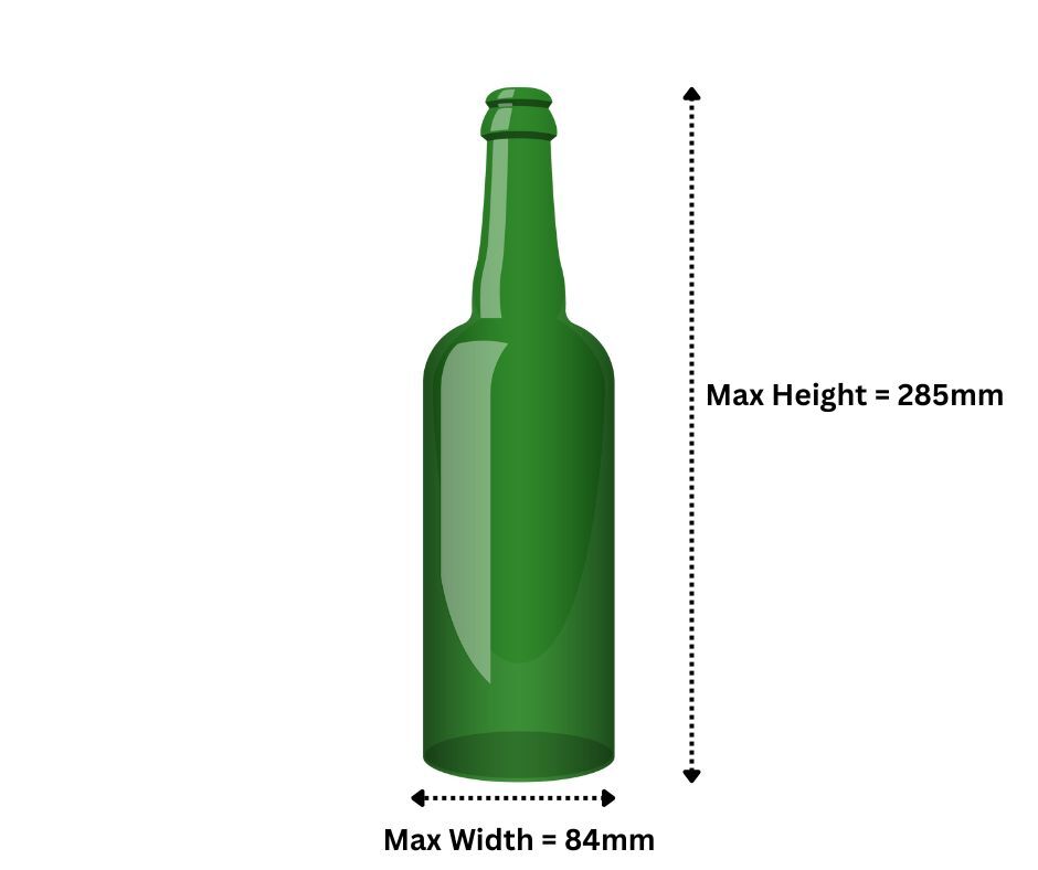Stackable wine bottle plastic crate. In order to stack the bottles must be a maximum height of 285mm.