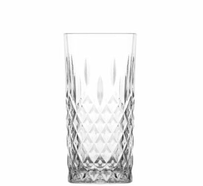 Vintage crystal look tall glass tumbler, stylish and elegant.