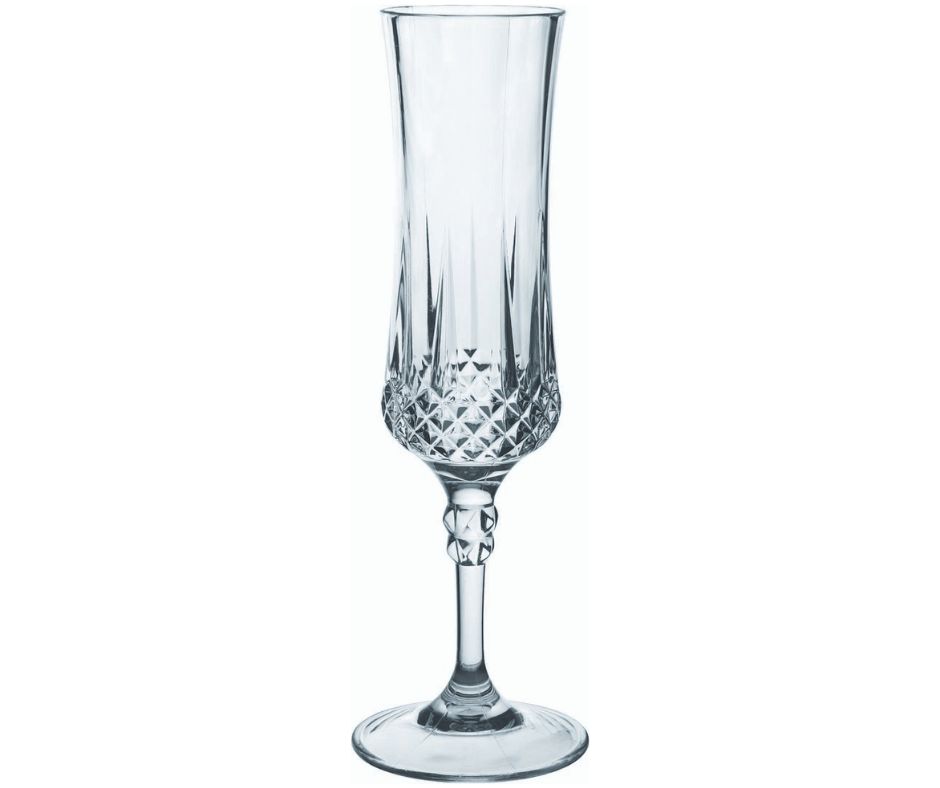 Gatsby plastic flutes have the appearance of traditional cut crystal with the practicality of plastic.