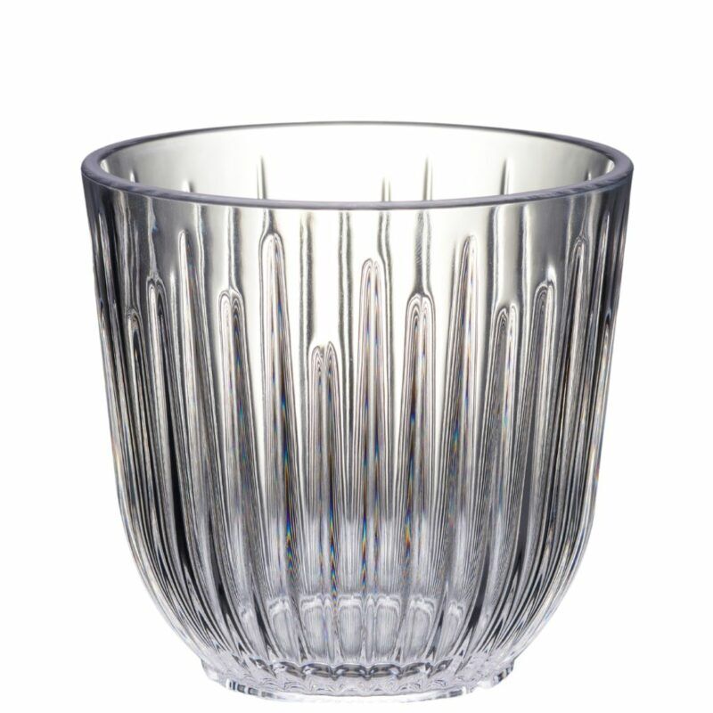 Beautiful and timeless short plastic tumbler glass which is ideal for serving cocktails, spirits on ice and water.