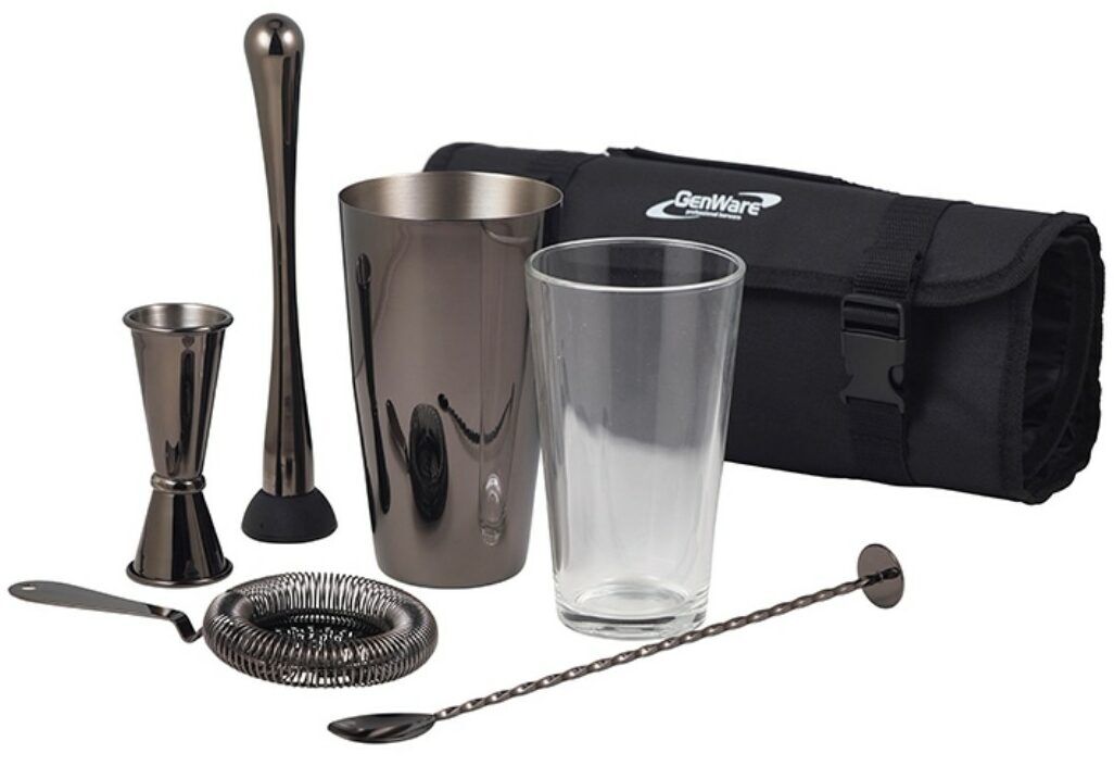 A Great Gun Metal Black Cocktail Starter Kit Containing All The Essential Tools For Making Cocktails Complete With A Carry Case For Easy Storage