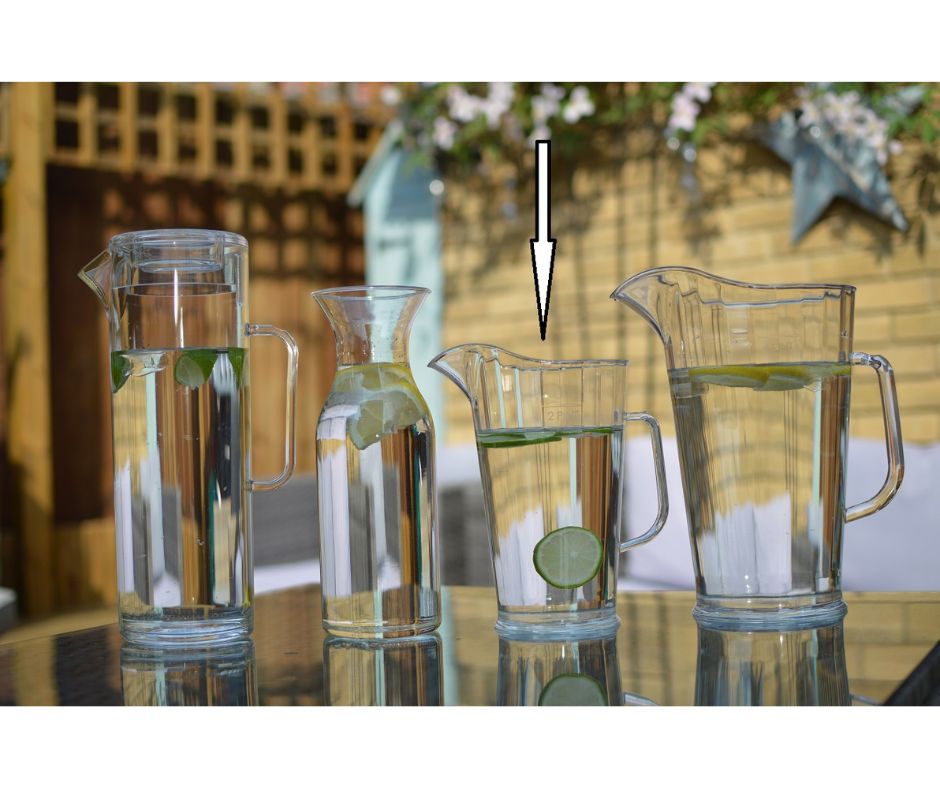 Small plastic pitcher suitable for use in pub gardens, for weddings, mobile bars, caterers, restaurants, hotels, caravanning and camping holidays, picnics and BBQ’s.